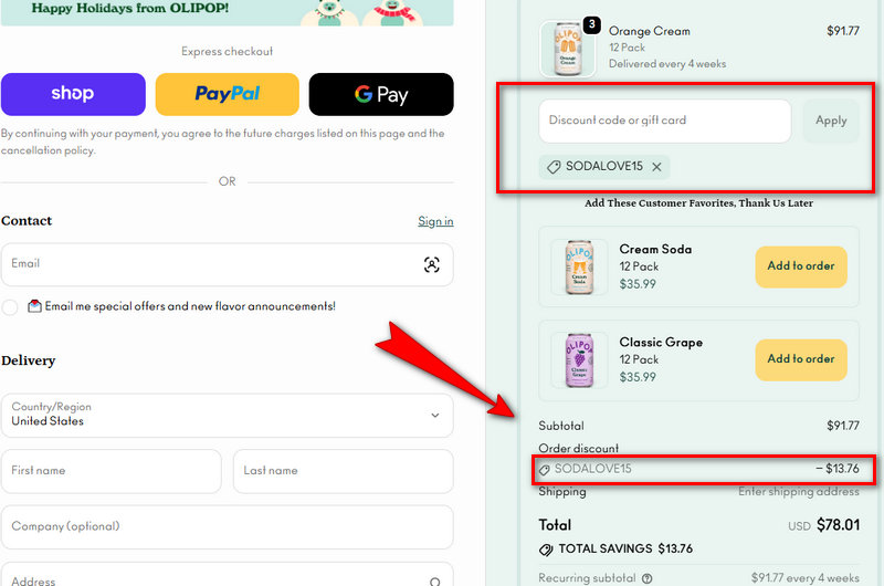 Accessing and applying an Olipop discount code is straightforward. The key to maximizing savings is understanding the brand's stacking policy.