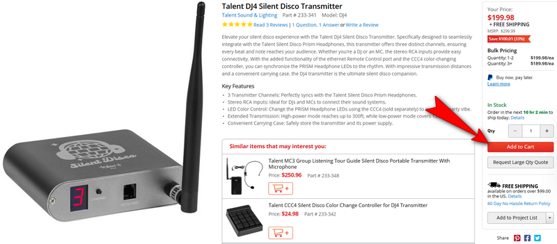 1. Visit the Parts Express website and select the desired audio gear or electronic components.