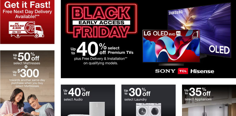 Founded in 1909 in Brooklyn, P.C. Richard & Son has grown into a leading regional retailer across New York, New Jersey, Connecticut, and Pennsylvania, known for reliable service and competitive pricing. The assortment spans refrigerators, laundry, cooking, dishwashers, TVs, air conditioners, mattresses, and small appliances, with a long-standing emphasis on authorised brands and after-sale support. The company underpins promotions with a low price guarantee and seasonal financing, while periodic promo codes, coupons, free delivery offers, and installation deals help value-seekers save more.