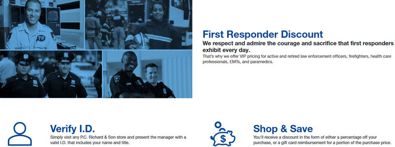 Firefighters, police officers, paramedics, and EMTs are eligible for first responder discounts. Save money by shopping in-store! PC Richard gives a 5%, 10% PC Richard promo code Reddit first responder in recognition of their bravery and feeling of duty. Visit the PC Richard first responder discount website for more details.