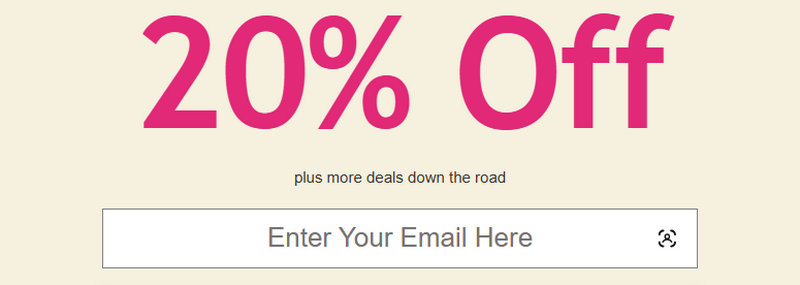 Email Sign up | 20% Off | 100% | Ongoing |