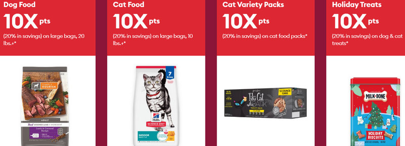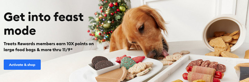 Treats Rewards – Everyday Savings | Earn 10 points per $1 (approx. 2–3% back). | All pets: food, litter, treats, toys, services. |