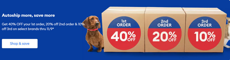 Autoship Year-Round Discount | Up to 35% off first Autoship order + 5% off recurring orders. | Dog & cat food, supplements, litter, and recurring essentials |