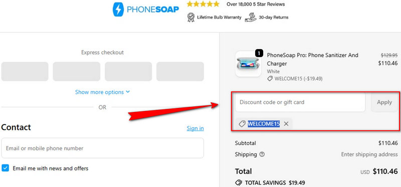 Generally, PhoneSoap’s system allows only one promo code per order. To maximize savings, compare a percentage-off code (like 20% off) against a free shipping code to see which yields a lower total.