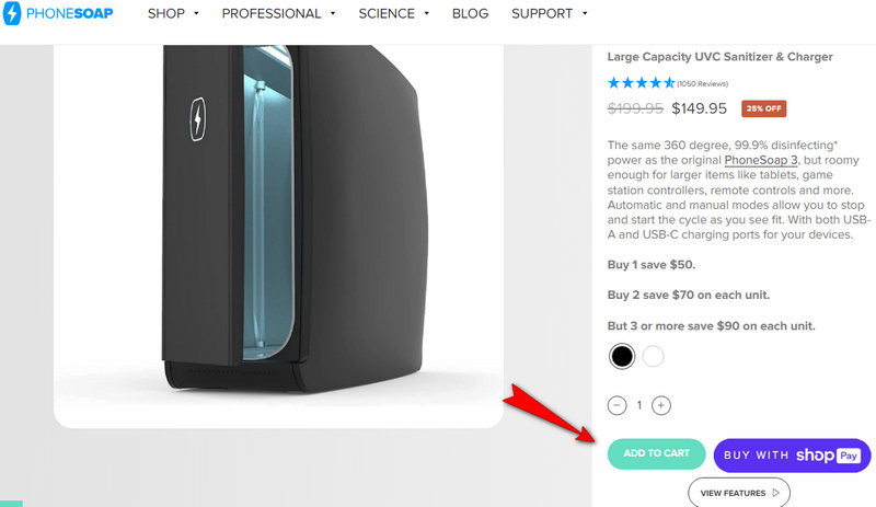 If a purchase is just under the $75 free shipping threshold, it is often more cost-effective to add a PhoneSoap Shine or a Germguard USB-C Cable to the cart. The cost of the accessory is often similar to the shipping fee, effectively giving the user a free product in exchange for the shipping cost.