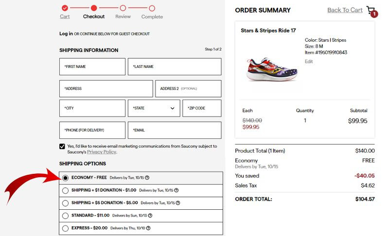 View your cart and move to the Checkout page. You will be prompted to fill in your name, address, and other shipping details. Ensure to provide exact information to avoid any hassle. The retailer is now providing FREE Economy Shipping on all $75+ orders. If your order value reaches this threshold, the offer will be added automatically.