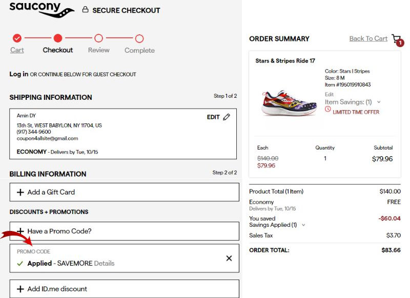 EXPERT TIP: Saucony typically restricts stacking promo codes. When you have two options (e.g., a 15% off code and a free shipping code), always select the percentage-off code for the largest total discount, as free shipping is often met automatically on orders over $75+.