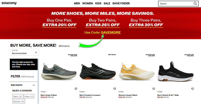 Typically, the promo code for Saucony shoes is often valid once per order if it’s issued. Hence, you should learn more about its T&Cs and restrictions to use it for the best savings.