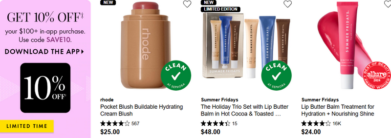 Sephora Collection Sale (Quarterly) | 30% off Sephora Collection products | Skincare, cosmetics, tools, and accessories | Auto-applied/ Insider exclusive |