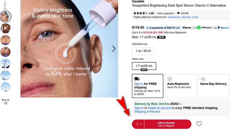 3. Add your desired items (makeup, skincare, fragrance, haircare) to the cart.