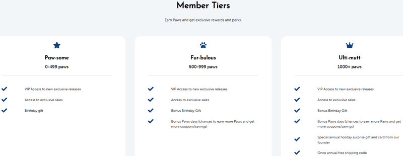 You earn "Paws" (points) for every dollar spent. You also earn Paws for following their social media, adding your birthday, or subscribing to their YouTube channel.