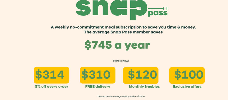 The Snap Pass is a recurring subscription that offers a 5% discount on every order. It is the most reliable method for long-term savings and ensures a consistent delivery schedule.