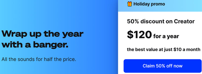 For small needs (like a few vocal chops and FX), the best value may be a one-month promo (such as Creator’s $4.99 first month) rather than committing to an annual.