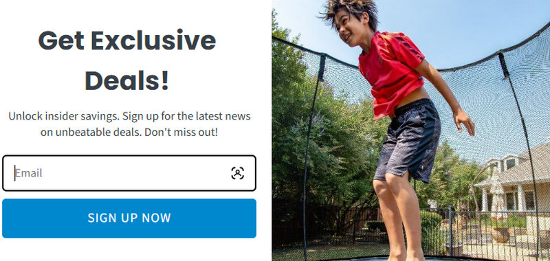 The realistic Black Friday discount is typically $200–$300 off select major trampoline models (Large Oval, Jumbo Square) or a significant accessory bundle discount valued at $100–$150. These are often applied automatically, not via manual code.
