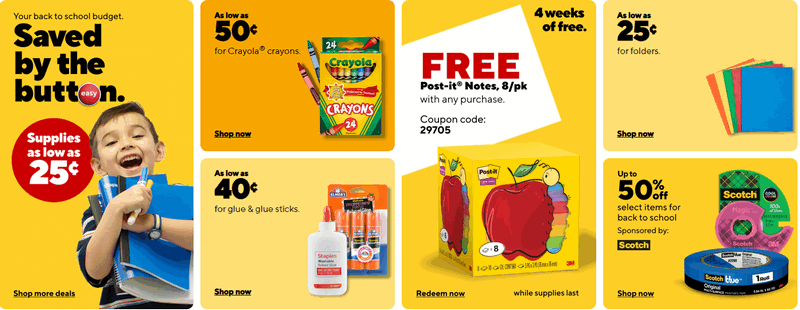 Back-to-School Freebies & Rewards | Free weekly items + 100% back in rewards (up to $40) | Post-it products, Sharpie pens, USB drives |
