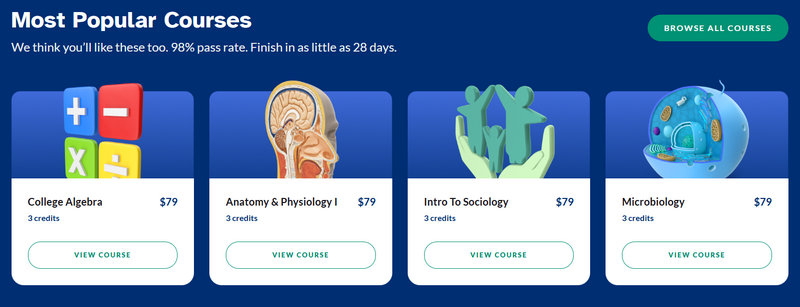 First Semester College Course Bundle | Approx. 20–25% off vs. buying courses individually on starter bundle of core gen-ed courses |