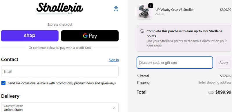 For families planning multiple purchases—stroller now, convertible car seat later—Strolleria rewards 10% back can beat a single promo code over time.