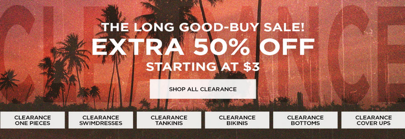 Back-to-Beach Clearance | Up to 80% OFF clearance | August 15–31 |