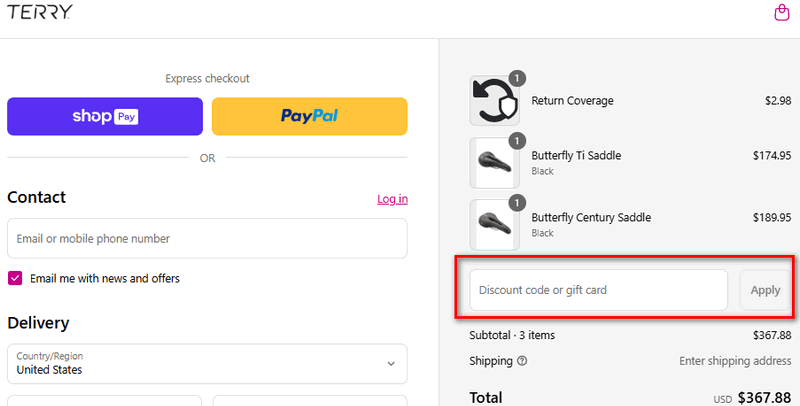 How to Redeem Terry Bicycles Coupon CodesRedeeming your discount is quick, easy, and ensures maximum savings on Terry’s premium products.