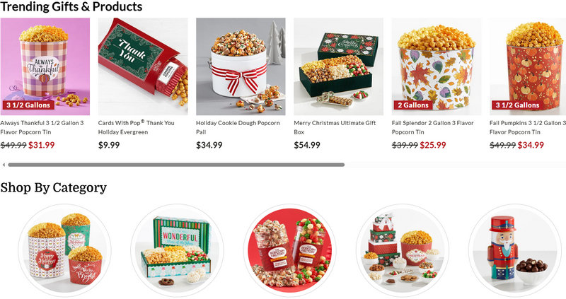 Black Friday/ Cyber Monday | ~20–35% off selected | Holiday popcorn tins, gift baskets, and corporate gifts |