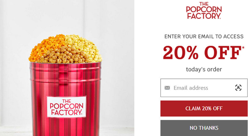 The Popcorn Factory often provides a percentage-off or dollar-off coupon (such as $5 or $10 off) for new customers who sign up for their email list. Check the website footer for the current new subscriber offer.