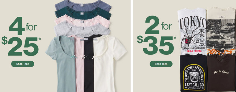 Black Friday/ Cyber Monday (late Nov) | 30–60% off sitewide categories Doorbusters under $20; Occasional $20 off $100 code | Hoodies, flannels, denim, footwear, accessories |