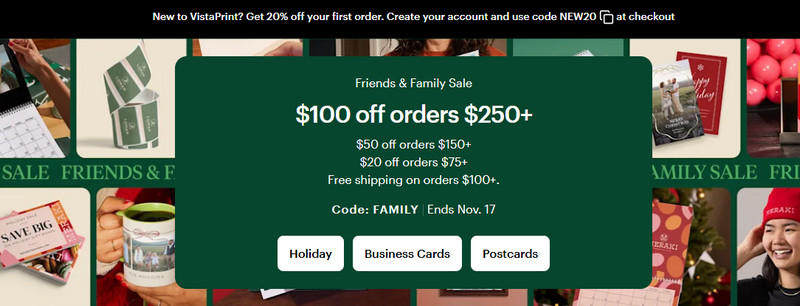 The NEW25 code offering 25% off your first order is usually the strongest Vistaprint promo code first order available, beating most sitewide offers.