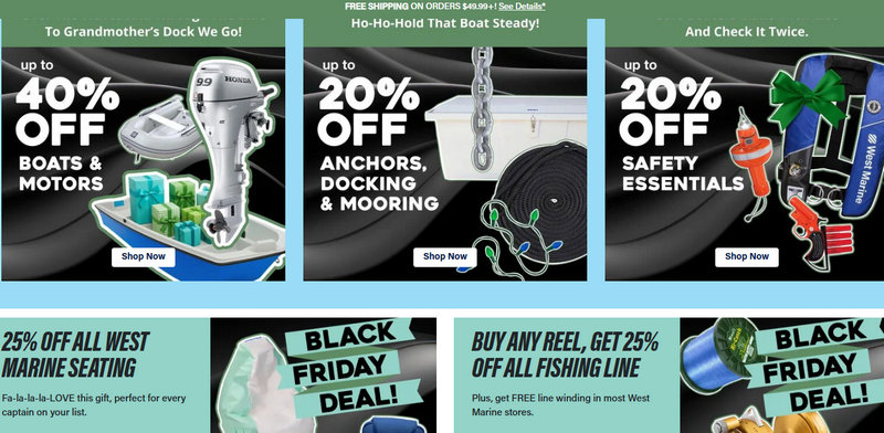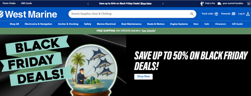 Black Friday & Cyber Monday Sale | Up to 50% off select boating gear and electronics; an extra 10–15% off promo codes on chosen categories |